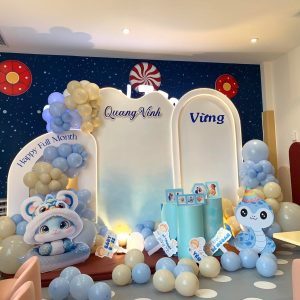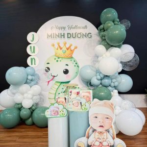 Trang trí đầy tháng cho bé trai tuổi rắn là một trong những cột mốc quan trọng được nhiều gia đình đầu tư tổ chức chỉn chu và đầy cảm xúc. Trong văn hóa Việt Nam, đầy tháng là dịp đầu tiên bé chính thức “ra mắt” với người thân, bạn bè – vì vậy không gian tổ chức cần mang đậm tính thẩm mỹ, đáng yêu và thể hiện được sự hân hoan của gia đình.