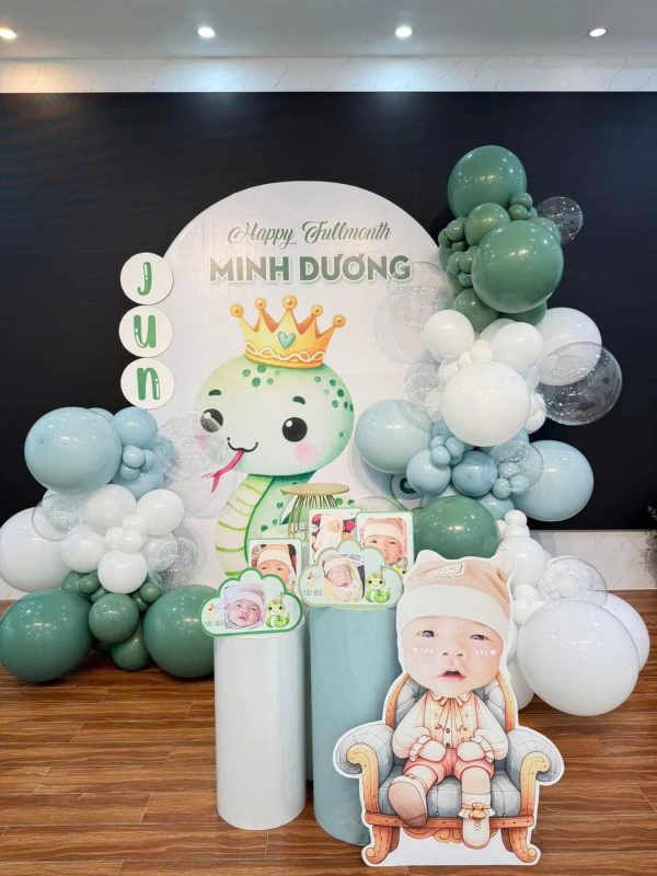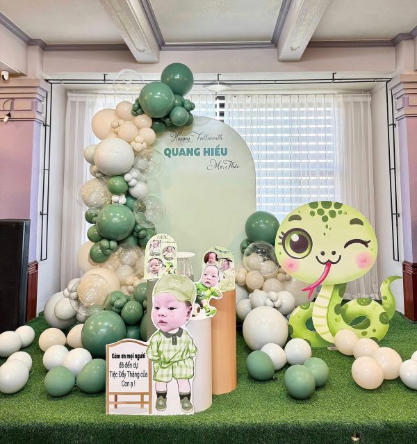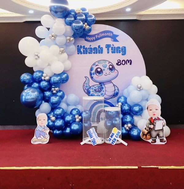 Trang trí đầy tháng cho bé trai tuổi rắn là một trong những cột mốc quan trọng được nhiều gia đình đầu tư tổ chức chỉn chu và đầy cảm xúc. Trong văn hóa Việt Nam, đầy tháng là dịp đầu tiên bé chính thức “ra mắt” với người thân, bạn bè – vì vậy không gian tổ chức cần mang đậm tính thẩm mỹ, đáng yêu và thể hiện được sự hân hoan của gia đình.